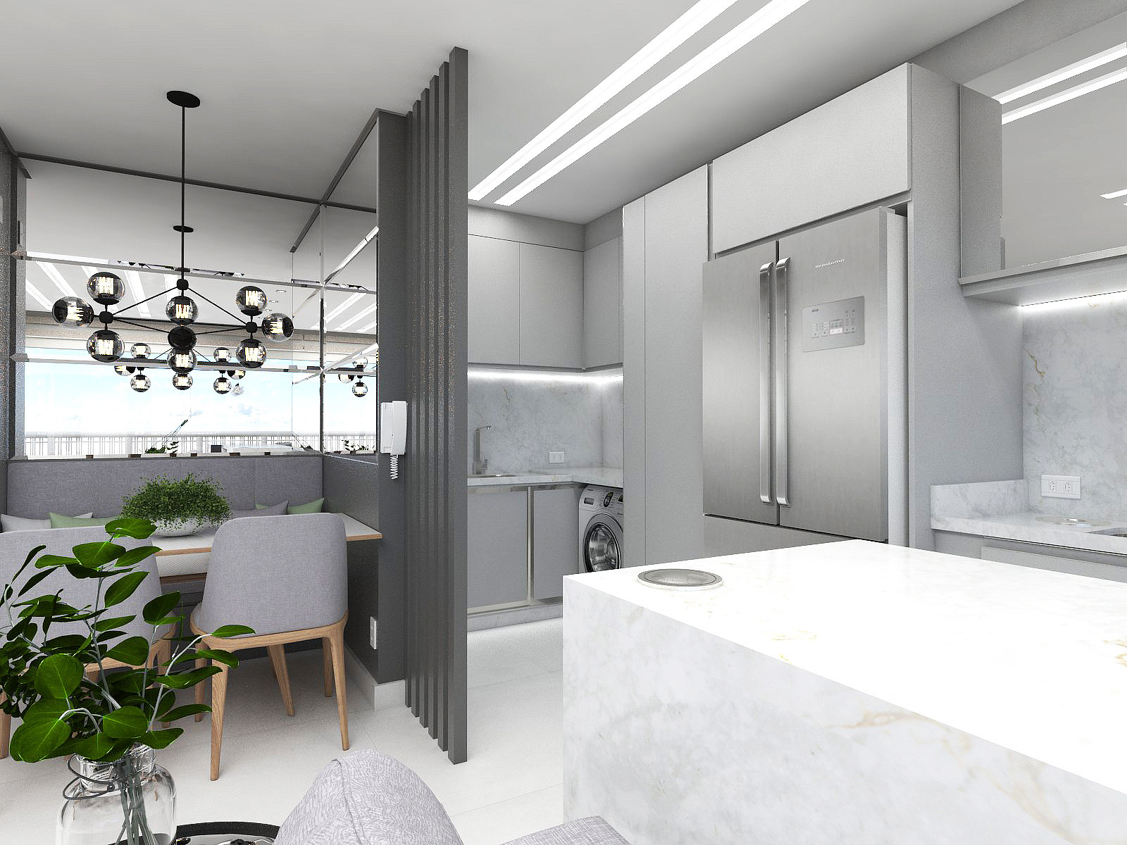 O projeto de interiores foi pensado para valorizar momentos de convívio.